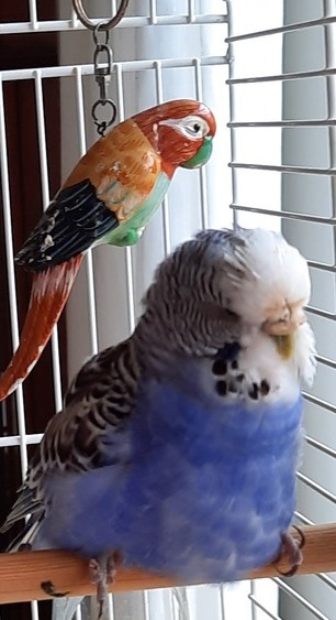 stapte met me mank pootje zo hup op de kooi, en ik denk ik ga vliegen de boom in er staan er genoeg, en ja hoor daar ging ik de bomen in . Twee vrouwtjes achter me aan en ik zat in een boom , toen wou ik de anderen boom in en ja