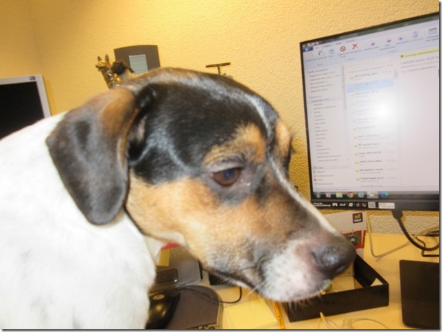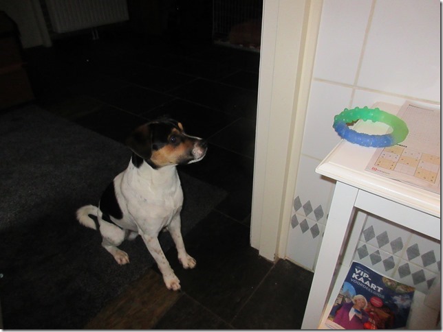 nachten. Dan mag hij naast bed. Piept-ie dan moeten wij eruit. Staan we te