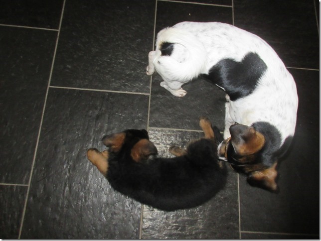 zag een jonge herder op de club en nam er weer één bij. Volle boel in huis met