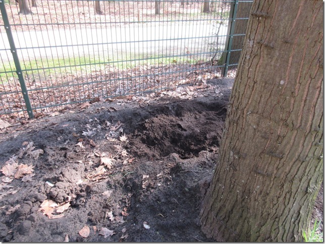 verbloemen. Hij graaft diepe kuilen.