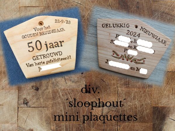 Zo ook deze mini plaquettes van ´sloophout´.