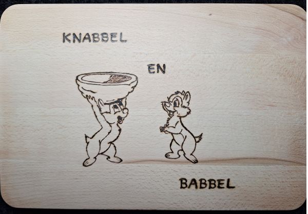 Knabbel & Babbel op de borrelplank🐿️ Dit keer heb ik een borrel- annex snijplank bewerkt met een kleine knipoog. Knabbel en Babbel kwamen erop terecht - want wat is er nou gezelliger dan samen iets te knabbelen met een leuke babbel erbij?😄 De plank ligt alvast klaar om mee te nemen naar de diverse markten die er weer aan zitten te komen, samen met nog heel veel andere houten artikelen! Ik kijk er naar uit om alle creaties weer uit te stallen en de leuke reacties te zien en te horen. Het wordt vast weer een gezellige boel!🌿✨ Gezelligheid begint al op de plank! 🪵💛 05-10-2025 om 00:55 geschreven door Pyrografie-CreaMar |