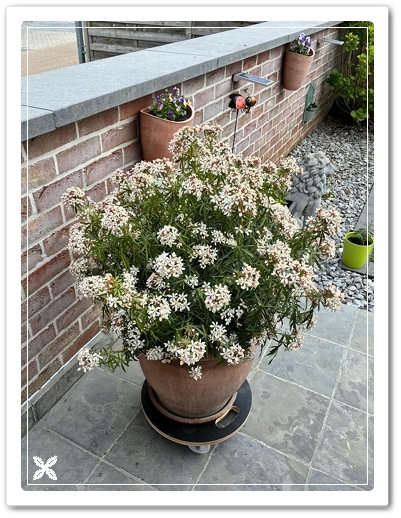 Een prachtige terras of tuin plant het ganse jaar door groen en bloemen groetjes van Sylvain.