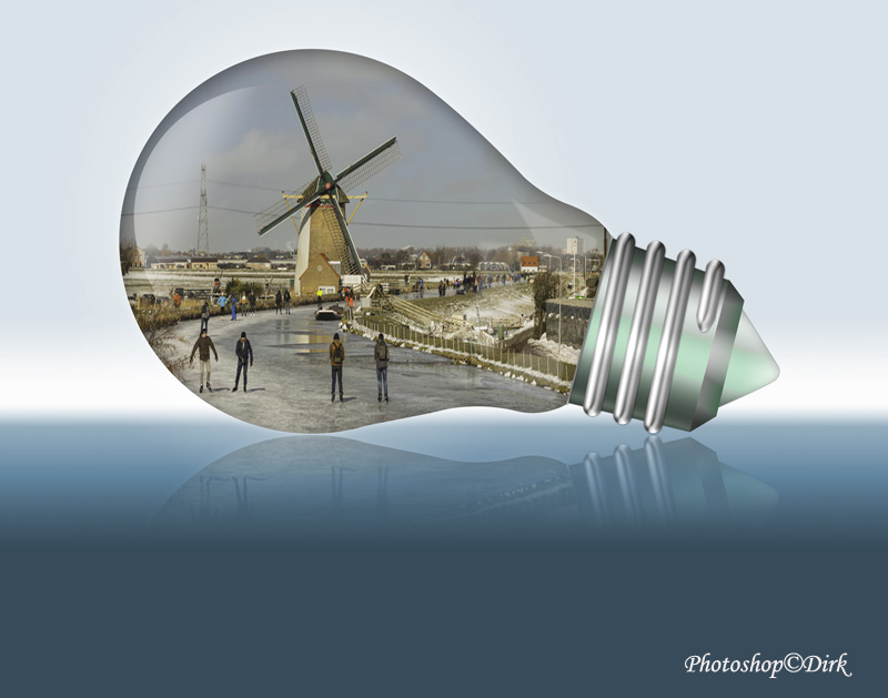 Winter plaatje in lamp verwerkt